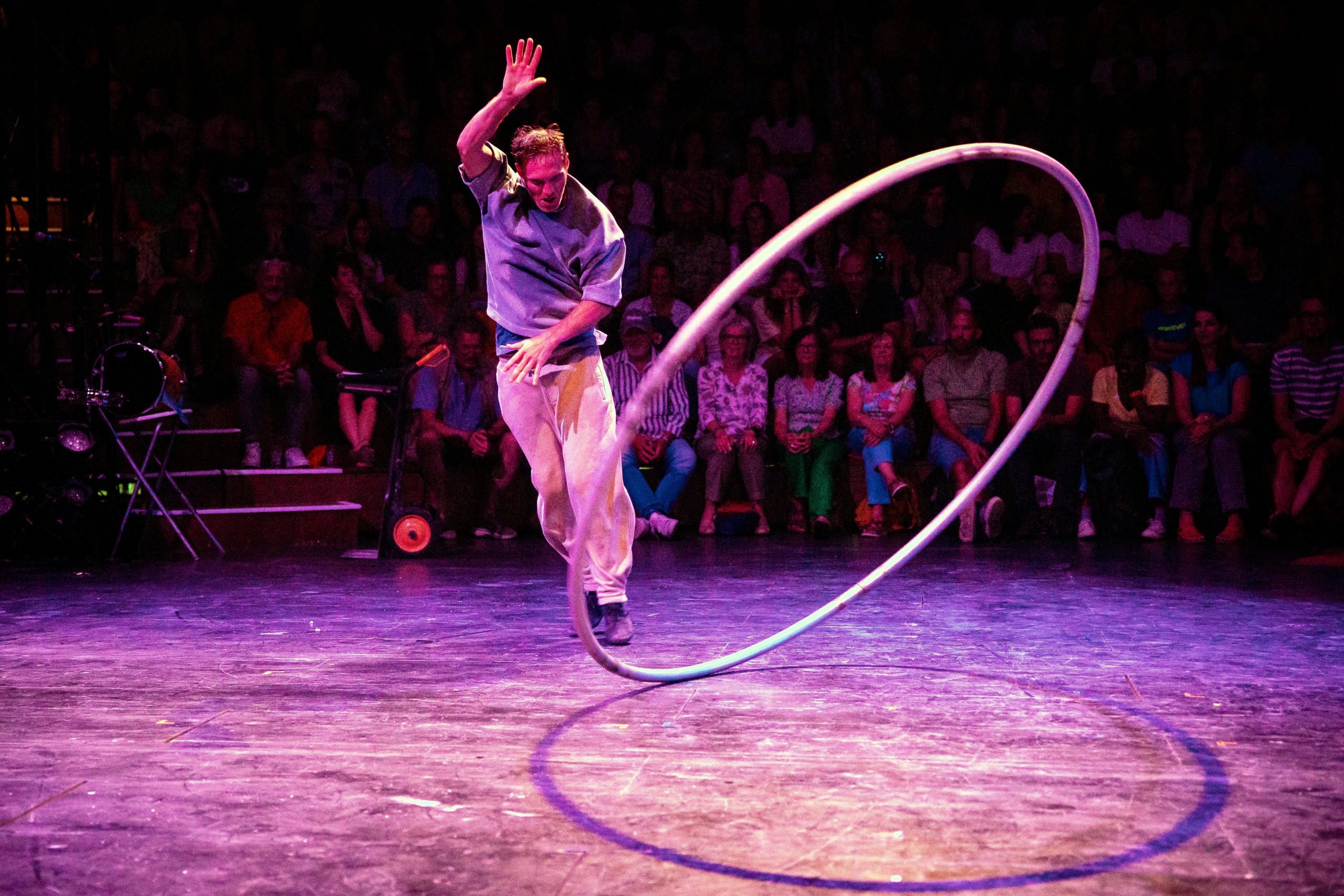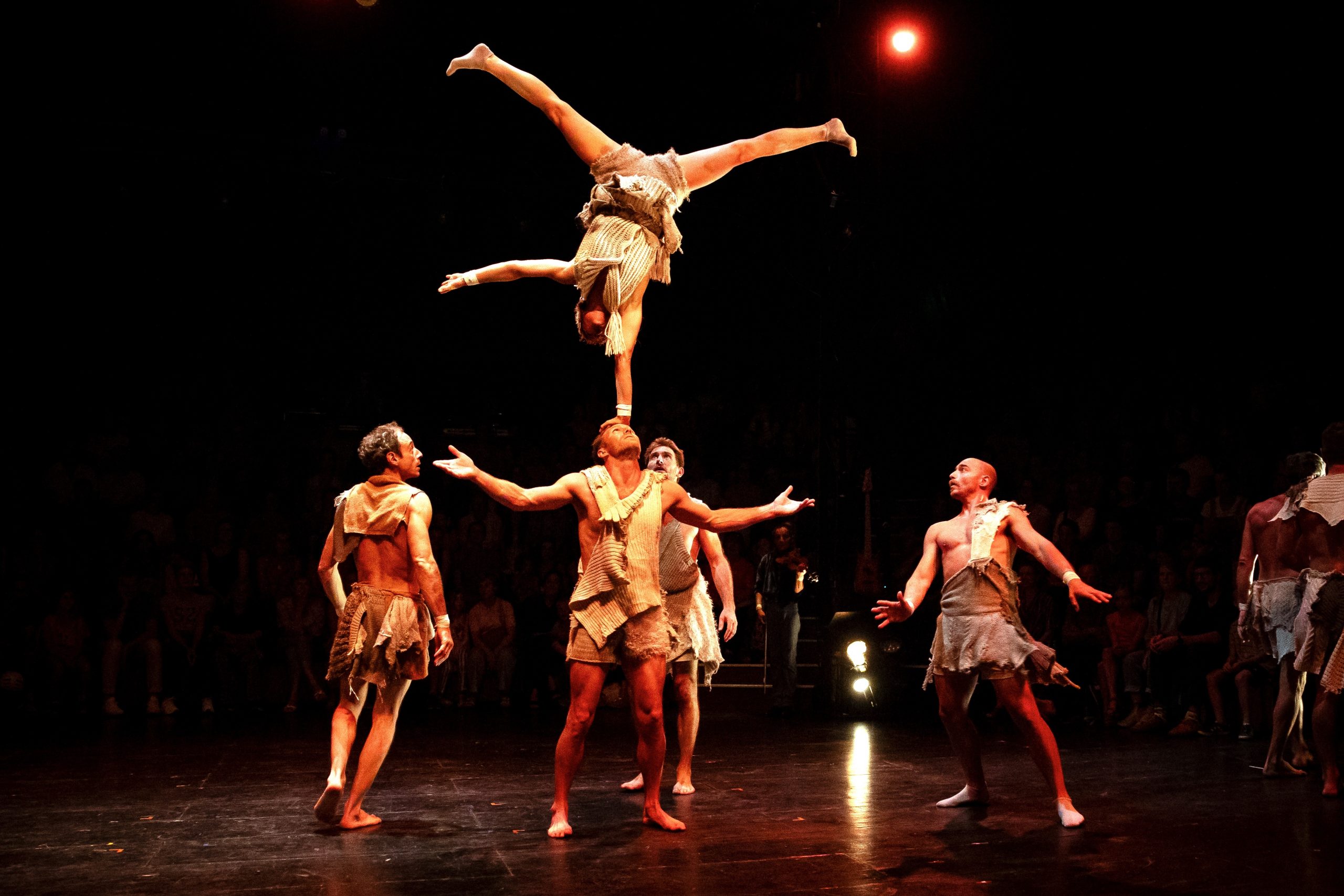 Époustouflant ! De la maîtrise du feu au premier pas sur la Lune, les dix circassiens et les trois musiciens d’Akoreacro vous entraînent dans la folle histoire de notre espèce. Tout comme l’humanité au long des âges, ils repoussent continuellement les limites à travers des prouesses toujours plus délirantes !